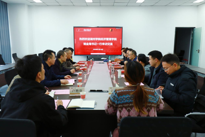 为加强校际合作、共谋学科发展,2026年1月16日下午,湖州学院经济管理学院党委书记、院长姚金海,党委副书记宁培龙,副院长王洪涛,服务地方办公室主任俞迪岸,国际经济与贸易专业负责人梁会君,旅游管理与服务教育系主任王心静,跨境电商系专任教师卢艳强,经济与金融系专任教师计昕昀一行,赴浙江科技大学经济学院开展调研交流。